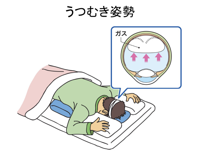 ガスを入れた場合には数日ほど、うつ向き姿勢が必要になります。